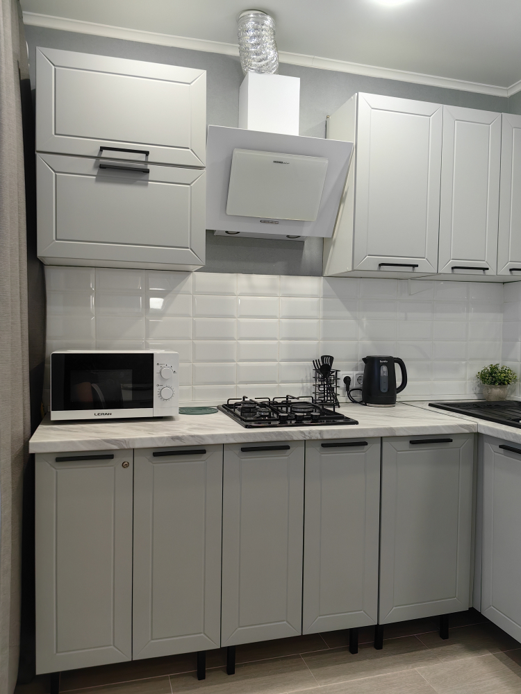 - Микроволновая печь, варочная газовая поверхность, холодильник.