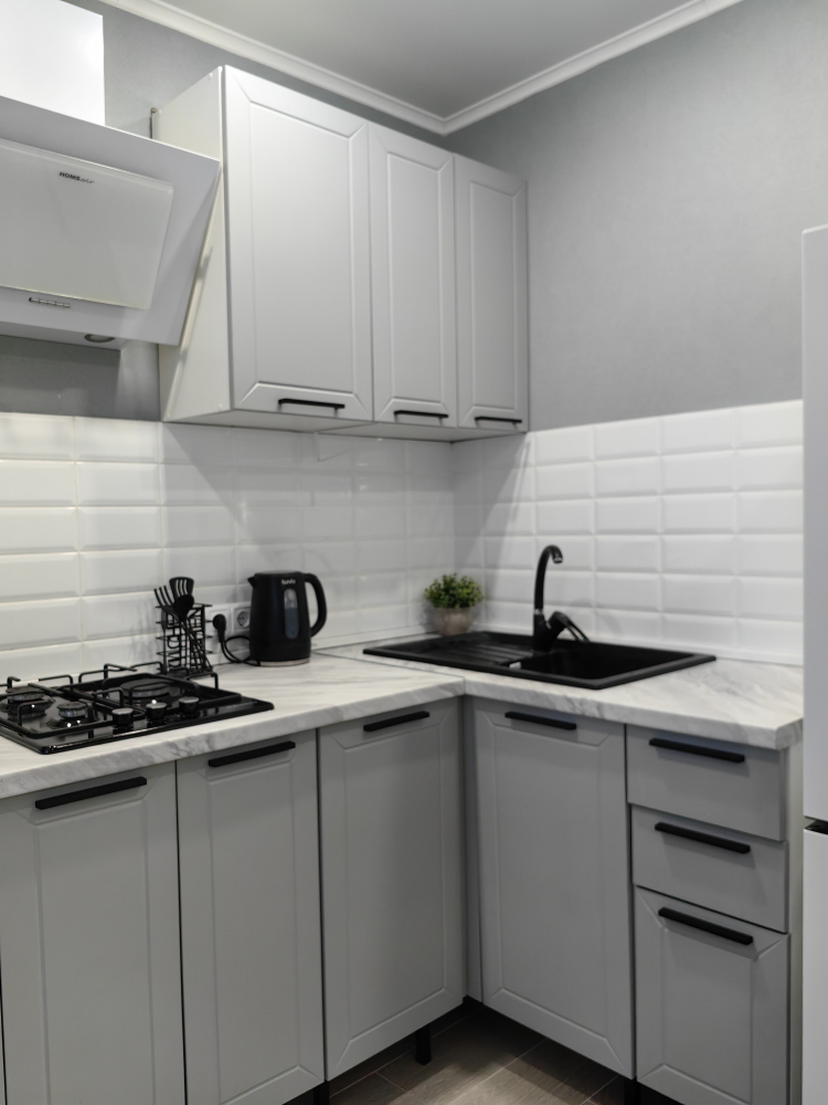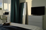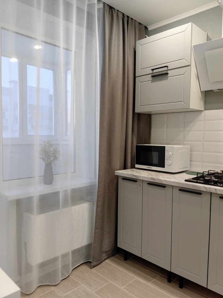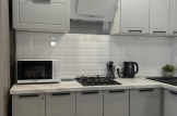 - Комфортная обстановка. В квартире есть всё необходимое для проживания: современная мебель, бытовая техника, посуда и текстиль.