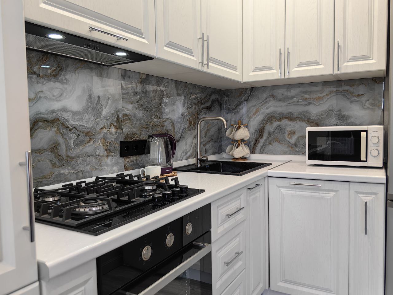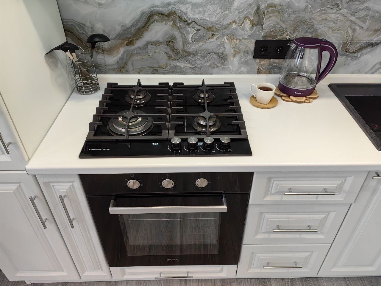 - Микроволновая печь, духовой шкаф, варочная электро поверхность, холодильник, посудомоечная машина